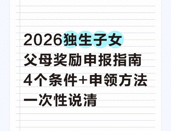 2026年独生子女父母奖励的申报已经在全国多地开始了,1到3月是集中办理的时间,部分地区1月15号就截止,错过基本要等明年补报。身边不少朋友帮父母办的时候,要么搞不清条件白跑一趟,要么误以为只能领一份,白白少拿了福利。其实这笔钱是国家对2016年前响应独生子女政策家庭的实际回馈,夫妻双方都符合条件就能双领,各地标准还不一样,经济好的地方一年能领近八千,特殊家庭补贴更高。我觉得这份福利不仅是钱的事,更是对这些父母当年选择的认可,毕竟他们为计划生育政策付出了实实在在的努力,晚年能多一份保障,心里也踏实。