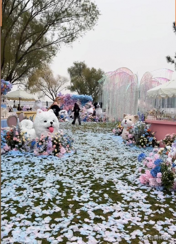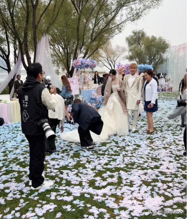 黄子韬在直播说婚礼筹备都是徐艺洋操作,看到直播中的现场置景,想说这怕不是他的免责声明。现场使用了大量的绣球花,空地上铺满了蓝色花瓣,四周还摆设了不少动物玩偶造型,看起来不伦不类。而且认真看,现场置景没有大花费,十分的简陋,场地也不大。