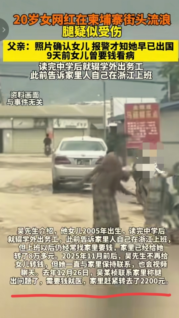 因为这件事情在网上引起了巨大的关注女子的父亲也刷到了女子的照片,据女子的父亲说自己的女儿读完中学以后就辍学去浙江务工,但却一直问家里面要钱家里面总共给拿了8万元左右,最离谱的是女子的家属也从来不知道女子早已出国。