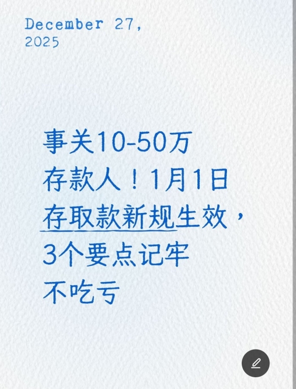 总的来说,这次1月1日施行的存取款新规,对咱们10-50万存款的储户来说,绝对是利好消息--流程简化了、手续费省了、办事更方便了,核心就是让合法的资金流动更顺畅,同时守住反洗钱的底线,保护咱们的资金安全。