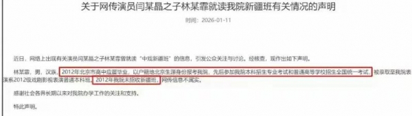 因此可以推断,中戏的声明确实没错,2012年确实没有新疆班。因为林傲霏是在2011年进入的新疆预科班,2012年才真正被录取进入的普通班。