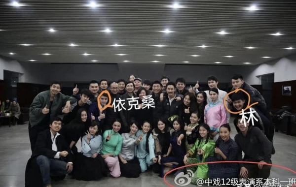 紧接着在2012级中戏表演专业本科班毕业合影中,又出现了依克桑和林傲霏的身影。