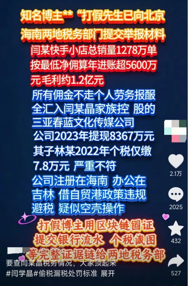 随着她的进一步塌房,已经有网友向有关部门递交了举报材料。