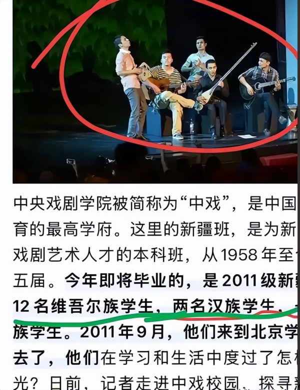 在中戏2015年发的一篇报道中,可以看到2011年中学是有新疆班的,而这里面就有两名汉族学生。