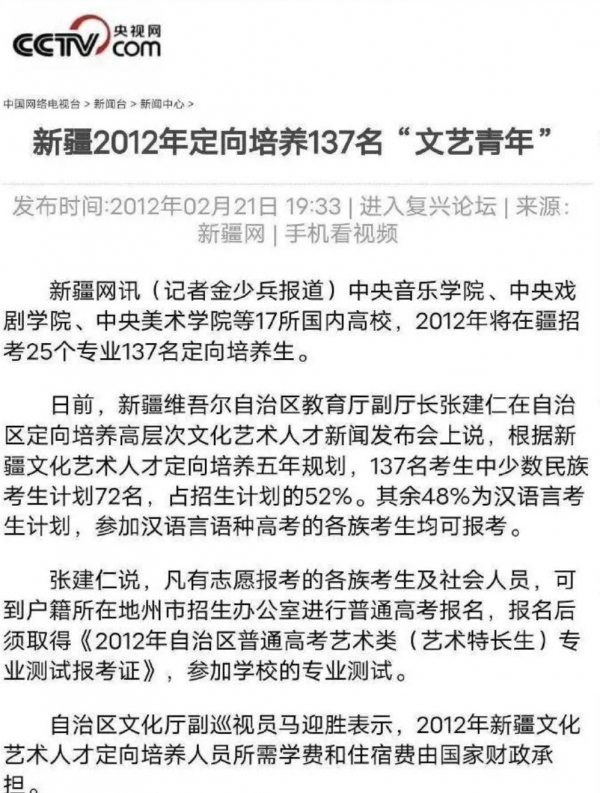 有网友扒出了一则旧闻,里面明晃晃的写着2012年将在疆招考25个专业137名定向培养生。