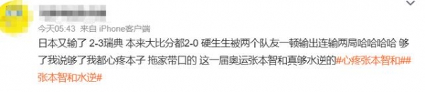虽然这场比赛没有中国队参与,但中国网友隔着屏幕也在关注这场比赛,纷纷都在网上发文心疼张本。