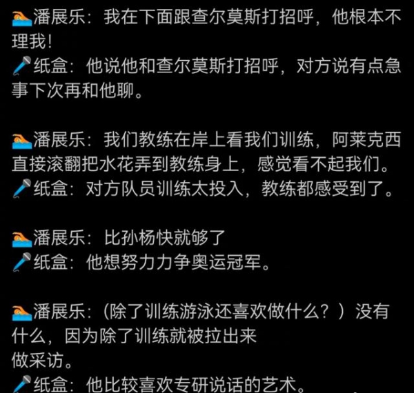还有热心网友大开脑洞,设想如果张本智和给潘展乐当翻译会怎么样。要是张本智和真给小潘当翻译,估计查尔莫斯都得给张本嗑一个,感想他的翻译让自己不用被全世界网友攻击成那样了吧。