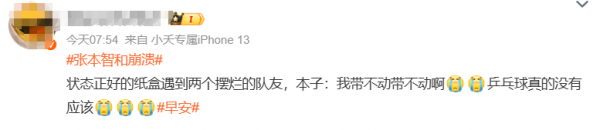 #张本智和一觉醒来 天亮了# 这个话题一度被刷到了热搜榜第二。