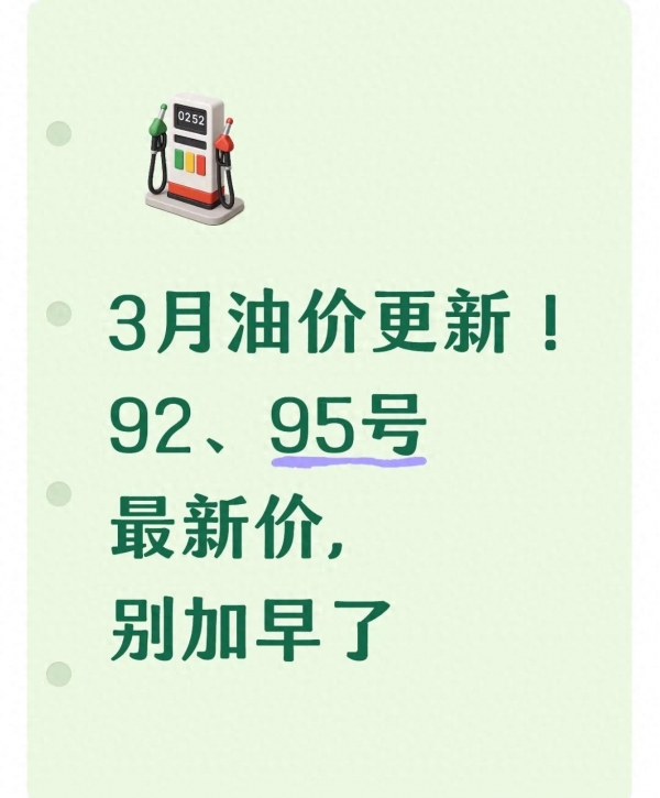 2. 3月12日油价更新!92、95号多少钱一升?先看再加油