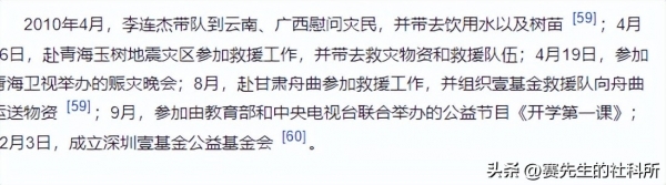 国内的众多天灾都能看到李连杰的捐款和物资支持,他一直用自己的行动树立榜样。