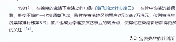 《黄飞鸿之壮志凌云》中的黄飞鸿让他迎来人生的转折点,该片获得了香港电影金像奖台湾电影金马奖,李连杰也开始获得香港的广泛关注。