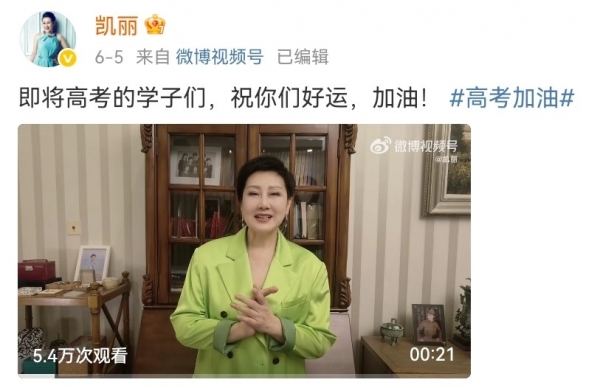除此之外,在张凯丽日常的社交平台上,也经常能够看到她传递正能量。