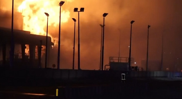 巴林穆哈拉克一处储油设施遇袭并起火 视频截图