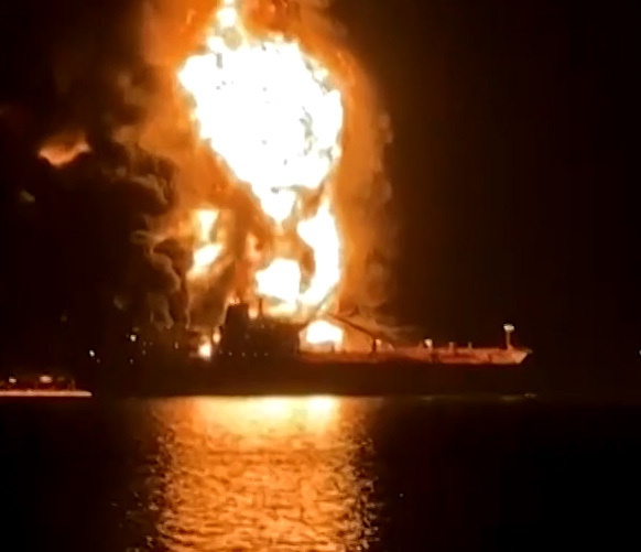 油轮在伊拉克附近海域遇袭并起火 视频截图