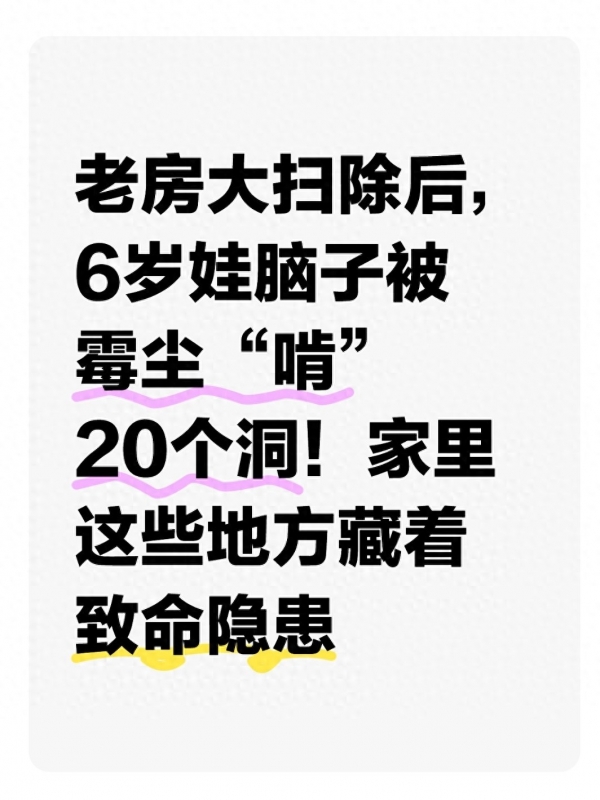 医生特别提醒:久未入住的房子,千万别让孩子参与打扫!开门后先开窗通风至少2小时,最好用风扇加速空气流通,让粉尘沉降,然后大人佩戴N95口罩和手套清理,清理完再通风1小时,才能让孩子进入。如果发现大面积霉斑(超过A4纸大小),别自己处理,找专业除霉公司更安全。