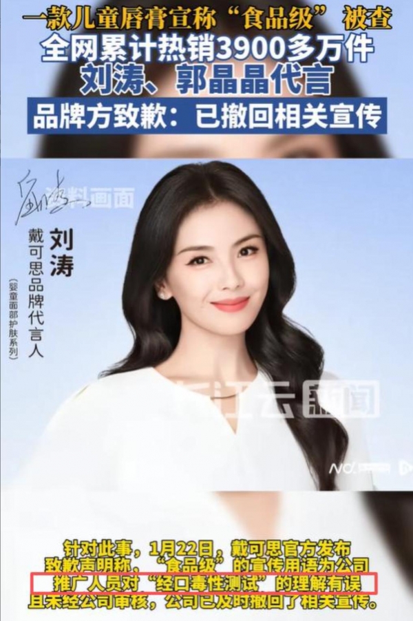 临近年关,婴童护理品牌戴可思被无锡市新吴区市场监管局立案调查,起因是其一款儿童唇膏宣称"食品级润唇膏""宝宝误舔无忧",违反《儿童化妆品监督管理规定》。