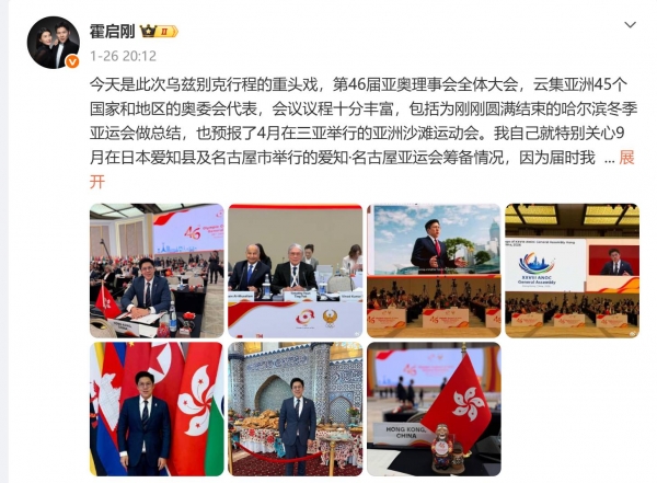 当时他正在乌兹别克斯坦参加国际会议,忙中更新近千字社交动态,全程分享与各界人士的会面,以及自己为香港体育外交做的工作,一字未提代言风波。