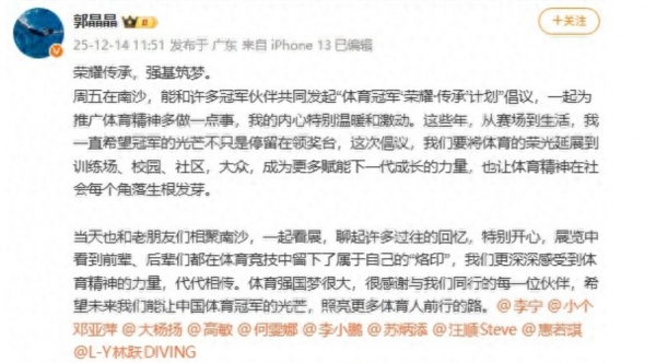 那个为国争光的跳水冠军,退役后深耕体育的从业者,低调节俭、不忘初心的普通人。