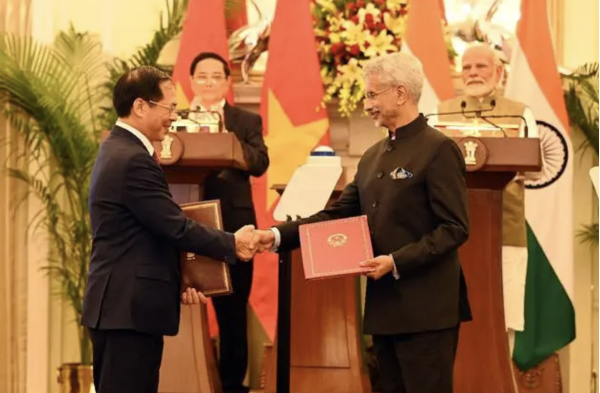 这一共识仍聚焦南海问题和中印边境问题。两人在媒体面前宣布,今后印度和越南将在地区和国际论坛上密切合作,坚持维护南海航行与飞越安全和自由,基于国际法和平解决争端等原则。