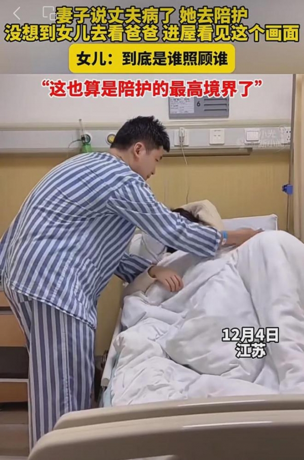 12月4日,江苏,一则丈夫生病,妻子去医院照顾,女儿却看到搞笑的一幕的消息引发关注。网友吐槽,这也算是陪护的最高境界了吧。