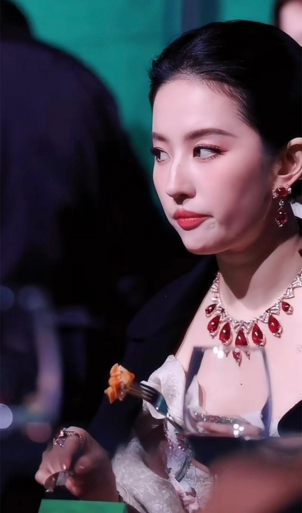 红毯现场,刘亦菲满头珠星,裙子贴身不留余地,定格那一刹,大家都在惊叹她像公主。但明明镜头切到侧面,那后背肉一坨一坨,抖森森的--没人敢说话,也没人敢不看。