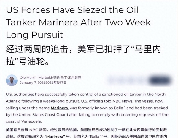 美军在北大西洋扣押了一艘跟委内瑞拉挂钩的油轮,这事闹得挺大,牵扯到俄罗斯的护航舰艇啥的。油轮本来叫贝拉一号,后来改成马里内拉,还换了俄罗斯的旗子。整个过程从去年十二月就开始了,那时候船从委内瑞拉附近的海域开出,本来打算去装石油,结果因为封锁啥的,没能靠岸,就这么空着肚子往前跑。美海岸警卫队盯上它后,追了挺长时间,大概两周吧。船一路往北海那边走,位置在冰岛南边不远。俄罗斯那边听说后,赶紧派了潜艇和军舰去接应,想给船护航。可惜距离太远,那些舰艇没来得及赶上,美军就先下手了。