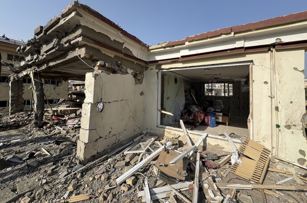 当地时间2025年10月16日,阿富汗喀布尔,巴基斯坦战机轰炸喀布尔后,当地一片狼藉。 视觉中国 图
