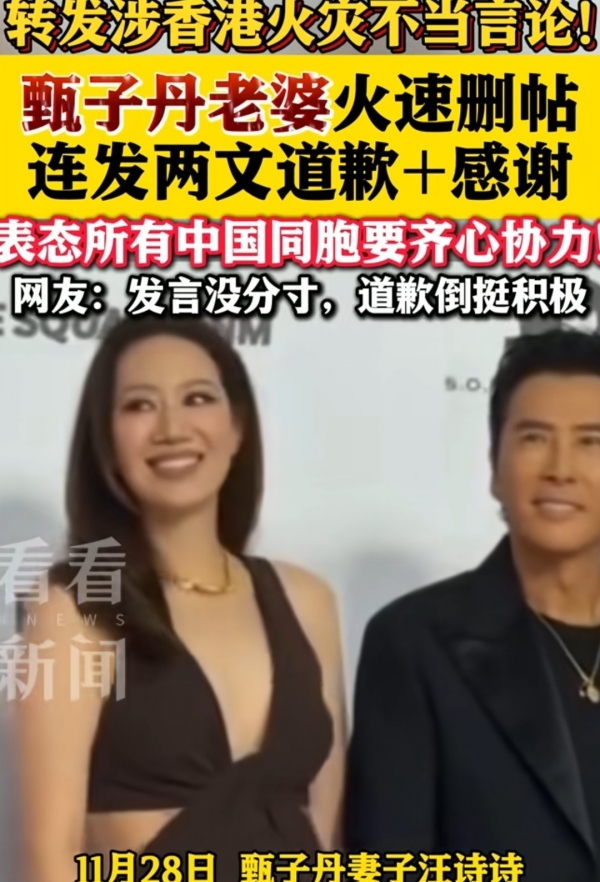 汪诗诗,甄子丹的妻子,在Ins上转发了一条限时动态,话里话外把火灾蔓延的责任推到"来自中国的不符合标准的易燃网和泡沫密封剂"上。这话一出,立马炸锅。别忘了,现在起火原因根本还没公布,调查还在进行中,哪来的证据指向内地材料?更别提香港工地这么多年都用竹棚架,防护网阻燃与否才是关键,跟产地有什么关系?80%的工程都在用竹棚,这事儿业内都知道,突然扯上"中国来的材料",味道就变了。