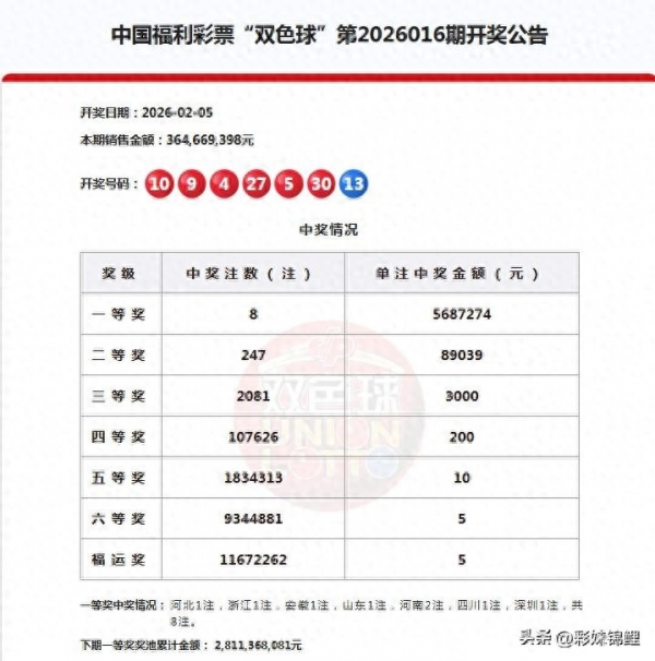 2月5日,星期四,晚上双色球26016期开奖出炉了。以下是本期的开奖公告: