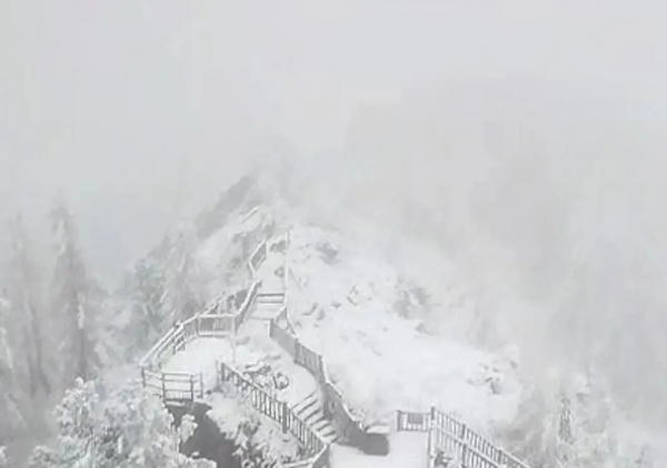10月1日,不少游客发视频称新疆喀纳斯下大雪,现场视频显示,景区内白茫茫一片,观鱼台的台阶上布满了积雪。喀纳斯景区管委会工作人员告诉记者,目前景区正常开放,但观鱼台处于关闭状态。