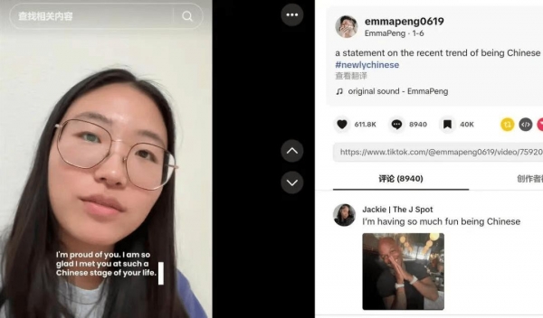 另一位华裔博主@emmapeng0619,借用电影《搏击俱乐部》的经典台词调侃道:"我很高兴在你人生这么'中国'的阶段遇见你。"