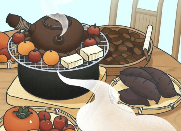 在家中围炉煮茶聚会