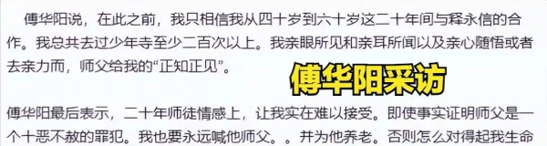 当然,傅华阳这样讲,未必真就想代替释永信的孝子贤孙尽义务,而是认为,只有这样的说法,才能恰如其分地流露自己对释永信的感情。