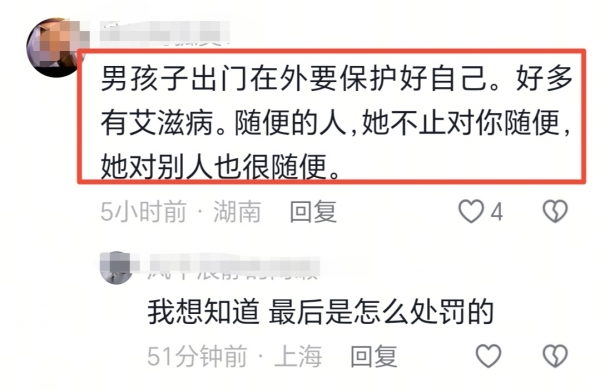 还有不少网友心生感慨,现在这年头,男孩子出门在外也要保护好自己,洁身自爱为自己的身体健康把关!毕竟,随便的人,她能对你随便也能对别人随便!