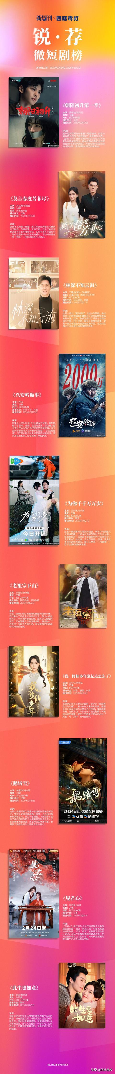 本次「锐·荐微短剧榜」周榜第二期(2025年2月24日--2025年3月2日)