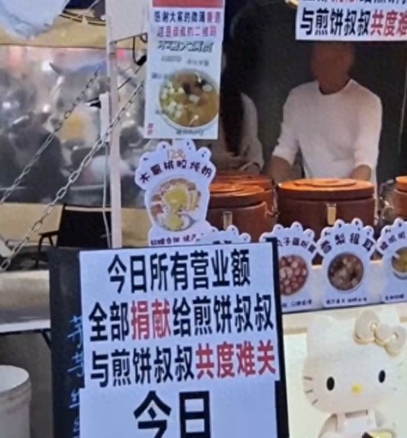 最先响应的,是与张建武朝夕相处的摊主们。他们曾是争抢客源的"竞争对手",却在得知同行遭遇困境后,毫不犹豫地伸出援手。生煎摊主高先生当晚便联系相熟商户,提议开展一日义卖,将当日营业额全额捐赠,这个提议迅速得到七家摊位的响应。12月10日清晨,小吃街的摊主们纷纷贴上通知:"今日所有营业额,全部捐献给煎饼叔叔",有的悄悄换上张建武的收款码,有的特意多备食材扩大义卖规模,甚至接手煎饼摊的新摊主,也主动加入了这场爱心接力 。