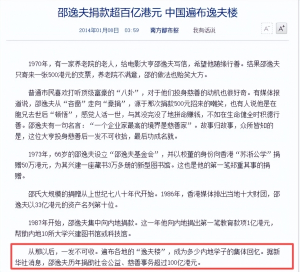 进入21世纪后,邵逸夫开始大规模做慈善。