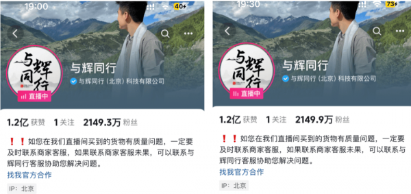 北京商报记者注意到,"董宇辉离职"相关话题引爆热搜后,"与辉同行"抖音账号粉丝数30分钟涨粉6000人。