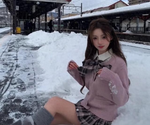 再看她在服装搭配上的心思,确实达到了四两拨千斤的效果,那一套香芋紫色的针织衫搭配白衬衫,下身是同色系的百褶短裙,整体造型完全摒弃了臃肿的冬季沉闷感,反而营造出一种轻盈的学院风,这种打扮在满是羽绒服的雪场里无疑是绝对的视觉焦点