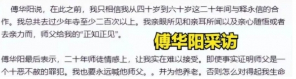 傅华阳的这段采访,更是碎三观,官方通报释永信有问题在前,他却充耳不闻,甚至还称要为释永信养老。