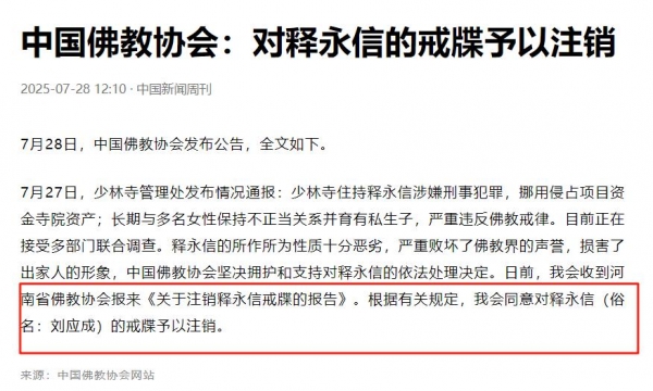 万万没想到,在释永信被带走调查,甚至连中国佛教协会都将他的戒牒注销后,竟然还有人替他说话。