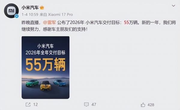 更值得注意的是,2026年小米汽车计划在年内推出4款新车,其中包括增程式车型,产品形态与使用场景将进一步扩展。这意味着,小米汽车正在从早期依赖单一爆款带动销量的阶段,逐步转向多产品并行的增长模式。
