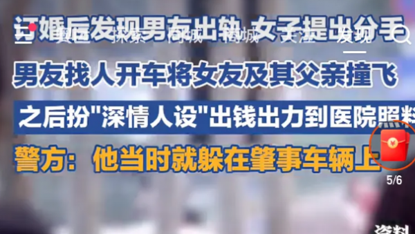 广东梅州一女子订婚后发现男友出轨,于是女子提出分手,就在女子去男友的路上,男友找人开车将女友及其父亲撞飞,之后扮"深情人设"出钱出力到医院照料,以此感动女子。警方调查发现,发生事故的时候,女子的男友正躲在汽车里面。可恶至极,更甚的是,女子还因为男友的原因搞了巨额贷款。真是渣到底了。