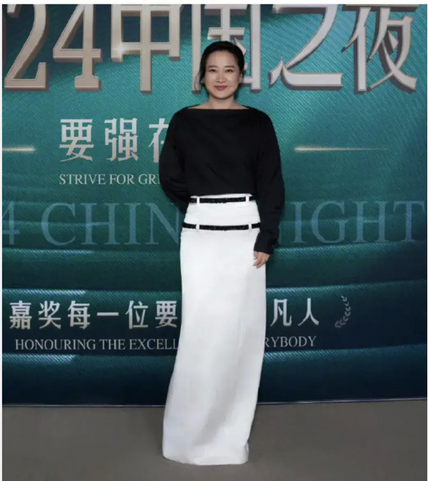 贾玲这次现身,穿着一身黑色上衣配白色修身裙,腰间还系了个黑色皮带,整个人看起来又瘦又精神。