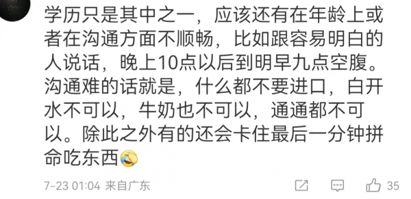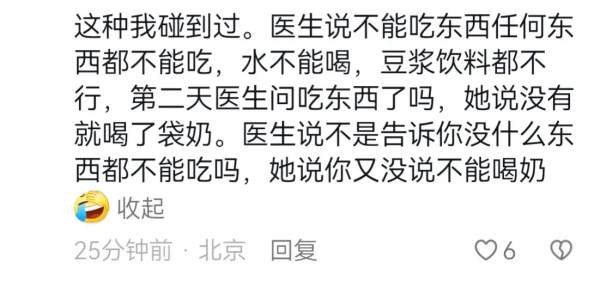 不是说高学历就一定没事,但低学历在一定程度上代表自控能力不行,交代了禁食禁饮,答应得好好的又再偷摸着吃喝。