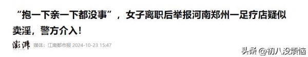 澎湃新闻--"抱一下亲一下都没事",女子离职后举报河南郑州一足疗店疑似卖淫,警方介入!