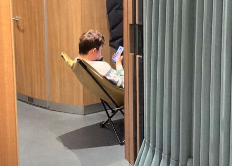 浙江一网友发了段视频:高铁两节车厢连接处,一个男人正惬意地靠在自带的折叠椅上刷手机。二郎腿一翘,手机一刷,那叫一个惬意。更绝的是,因为连接处空间相对独立,还没人打扰,旁边就是大窗户,视野开阔。这哪里是无座,分明是"移动商务座"。