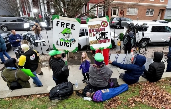 在当地时间12月10日举行的法庭听证会期间,当被问到如何对指控进行辩护时,他俯身对着麦克风说"无罪"。他的支持者则在法庭外举起标语,喊着"路易吉无罪!""释放路易吉!"。