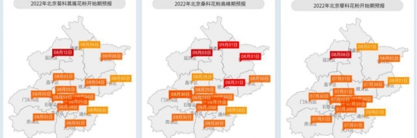 8月10日,北京世纪坛医院花粉监测数据显示,目前北京地区已进入夏秋季花粉期高峰期,将持续到9月中上旬,9月下旬花粉浓度开始逐渐下降,症状逐渐缓解。