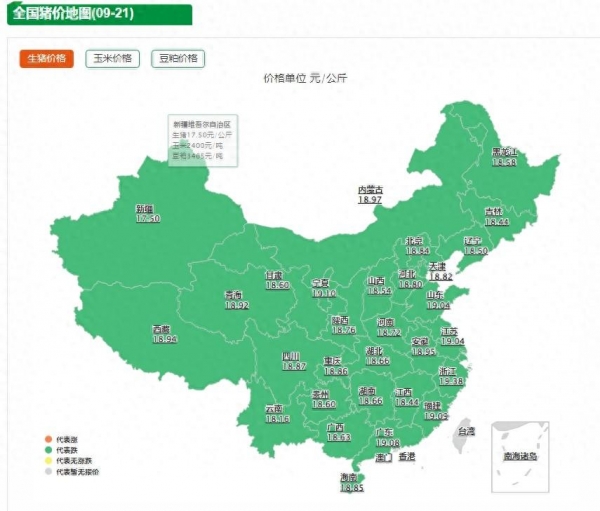 据猪好多数据监测显示,今日全国外三元生猪均价为18.79元/公斤,较昨日深跌0.17元/公斤。其中北京深跌0.41元/公斤,天津下跌0.34元/公斤,广东大跌0.42元/公斤。全国范围内仅有山东、浙江、福建、江苏、上海、广东等几个地区,均价还在19元区间,其他地区均已跌至18元区间。新疆为全国猪价盆地,均价仅为17.5元/公斤。
